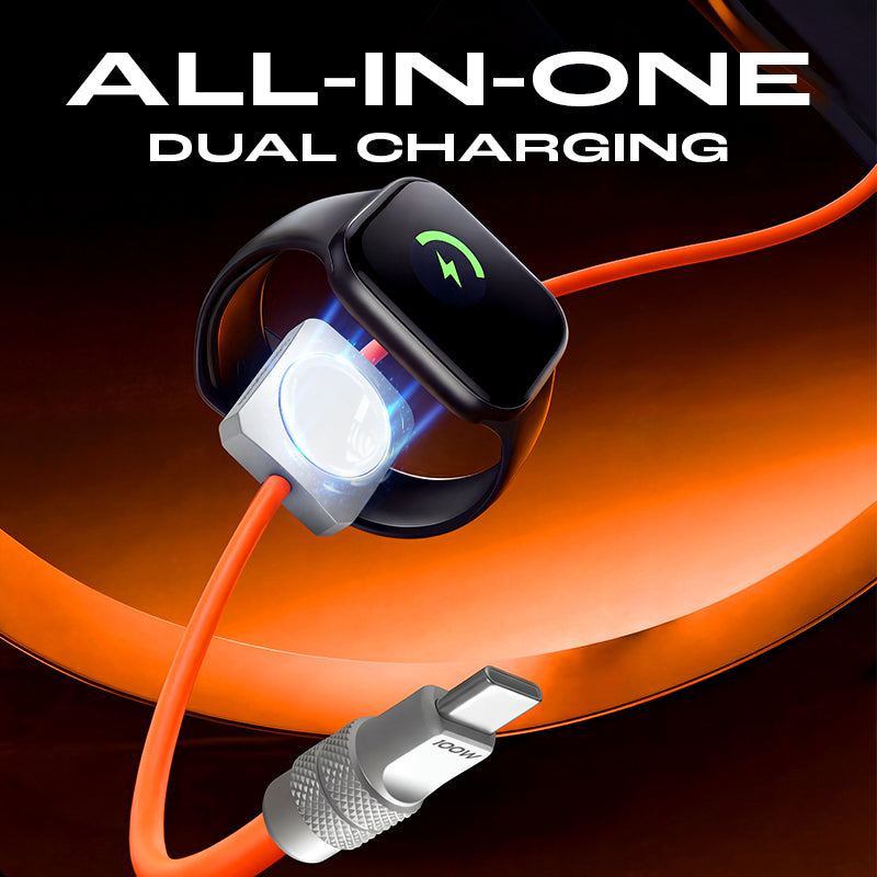 Simplify your charging routine with our single 2-in-1 cable, which powers both your Apple Watch and smartphone seamlessly in one go.
