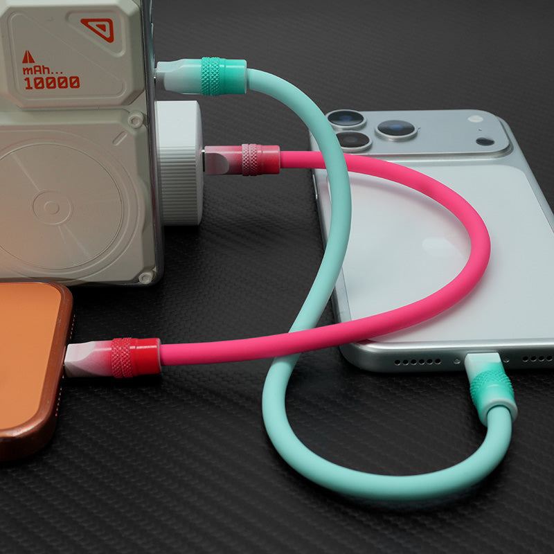Charging in color! Dopamine-boosting gradient design electrifies your mood as it powers up your device. From cable to sleek connector, joy in every glance.